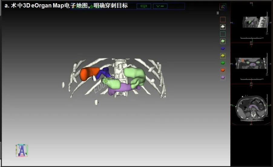 a. 术中3D eOrgan Map电子地图,明确穿刺目标