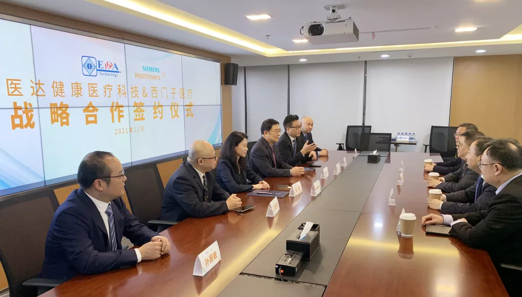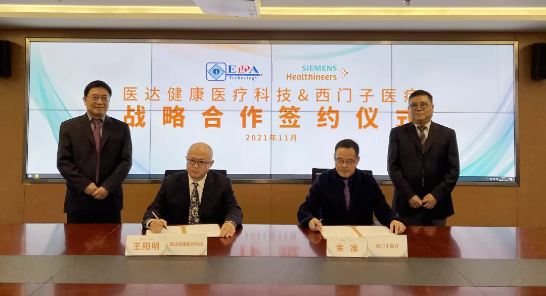 西门子医疗系统有限公司(以下简称“西门子医疗”)与医达健康医疗科技控股有限公司(以下简称“医达健康”)于2021年11月12日正式签署战略合作协议,双方将整合各自在肿瘤精准诊疗和医学影像人工智能科技领域的优势,充分发挥战略互补,开展以影像为引导的精准诊疗的深度合作,为医院提供肿瘤精准微创介入诊疗一体化解决方案,涵盖肿瘤的早期检测、精准诊断、术前精准规划、术中智能导航、术后定量评估及随访等领域。双方将共同致力于先进影像及治疗技术的临床价值推广,持续创新,赋能医生,服务中国广大的医疗机构和临床患者。