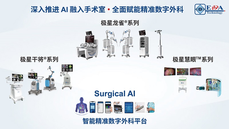 在智能介入和腔镜手术机器人领域,医达健康拥有极星干将®系列、极星龙雀®系列、及AI腔镜数字平台极星慧眼™系列产品。